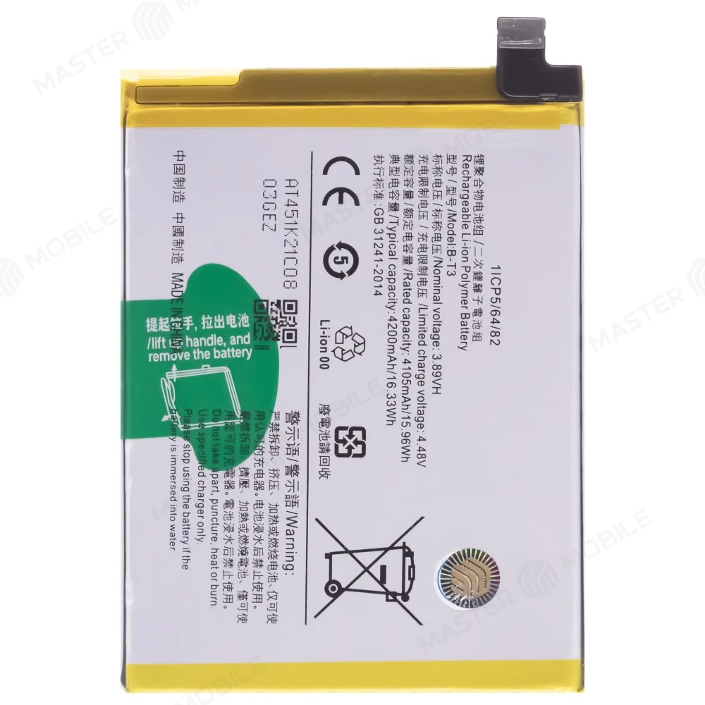 Качественные запчасти для смартфонов по лучшим ценам. Интернет-магазин MASTER MOBILE предлагает купить Аккумулятор для Vivo V23 5G (V2130) (B-T3) по цене 599 руб. для замены неработающей батареи смартфона. Аккумулятор целиком совместим с моделью устройства, указанной в характеристиках. Огромный выбор аккумуляторов и других запчастей в каталоге MASTER MOBILE.
