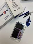 Пришел полностью целый, запакованный аккумулятор. В наличии наклейки и двусторонний скотч. Визуально, от оригинального аккумулятора не отличить. Я поменял в сервисном центре, он встал как родной и все работает исправно. Я еще не тестировал сколько он держит заряд, но кажется, что дольше, чем мой старый аккумулятор. При установке у мастера проблем не возникло.