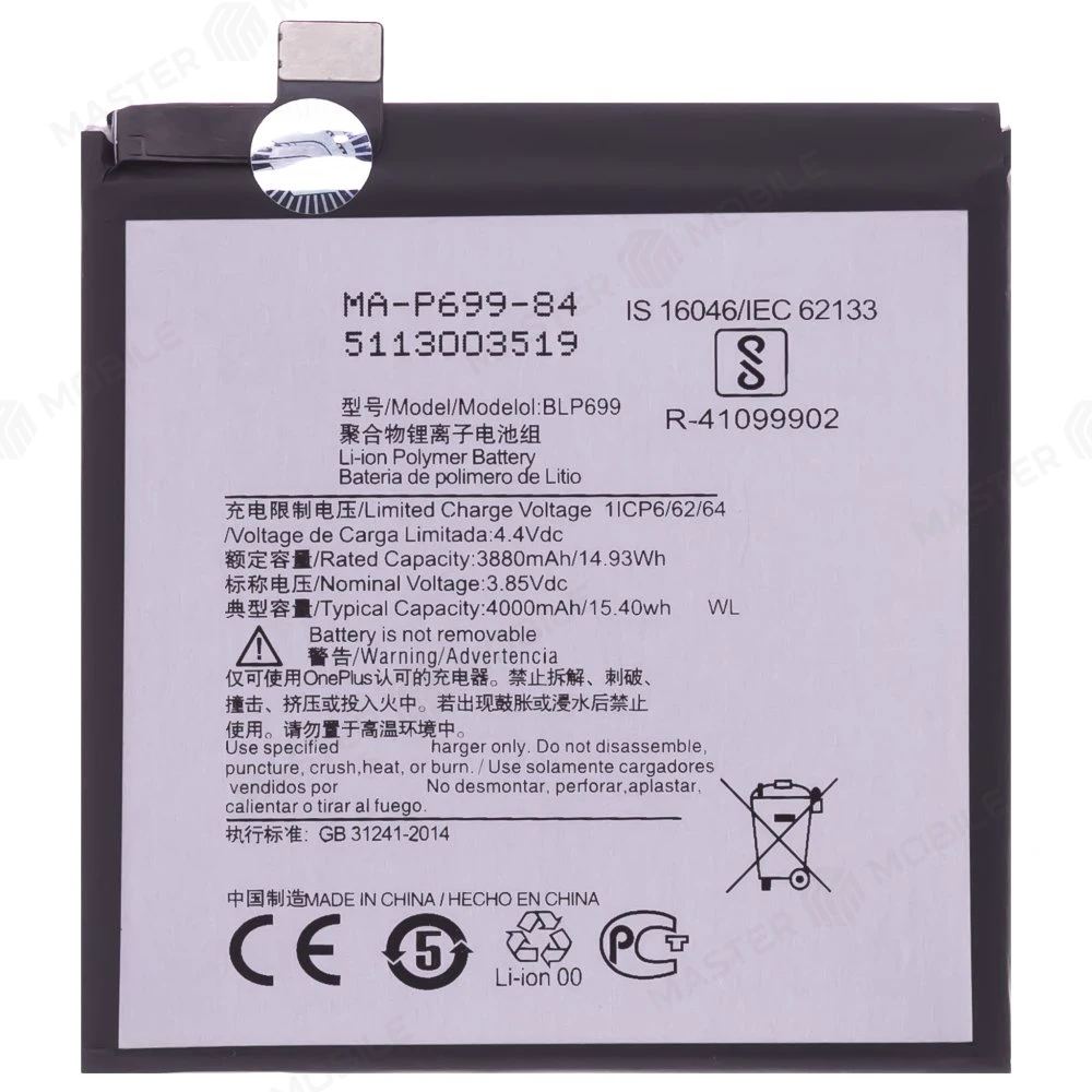 Качественные запчасти для смартфонов по лучшим ценам. Интернет-магазин MASTER MOBILE предлагает купить Аккумулятор для OnePlus 7 Pro (BLP699) (Premium) по цене 1 290 руб. для замены неработающей батареи смартфона. Аккумулятор целиком совместим с моделью устройства, указанной в характеристиках. Огромный выбор аккумуляторов и других запчастей в каталоге MASTER MOBILE.