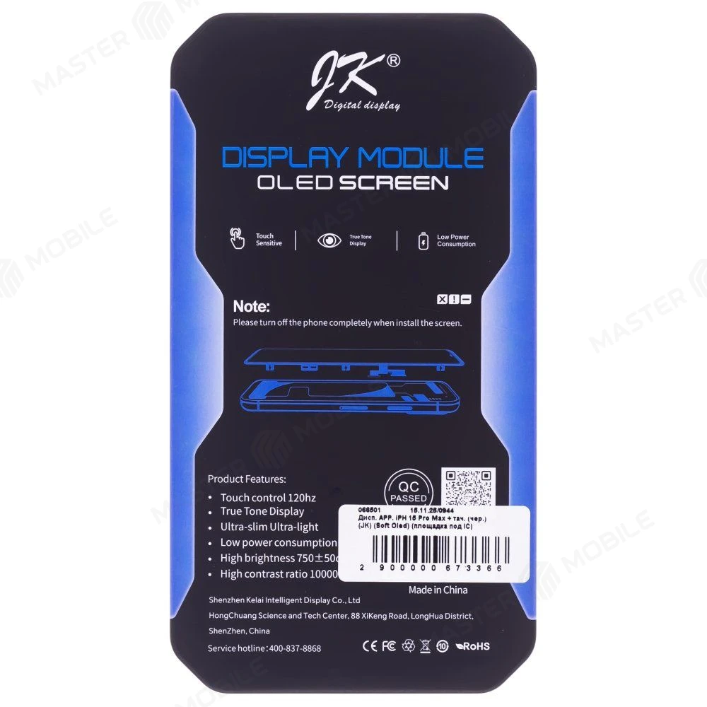 Характеристики Дисплей для Apple iPhone 15 Pro Max + тачскрин (черный) (JK) (Soft Oled) (площадка под IC)