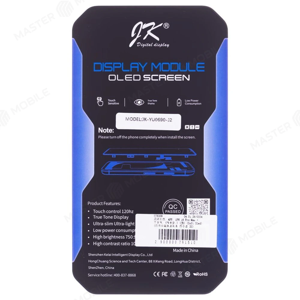 Описание Дисплей для Apple iPhone 16 Pro Max + тачскрин (черный) (JK) (Soft Oled) (площадка под IC)