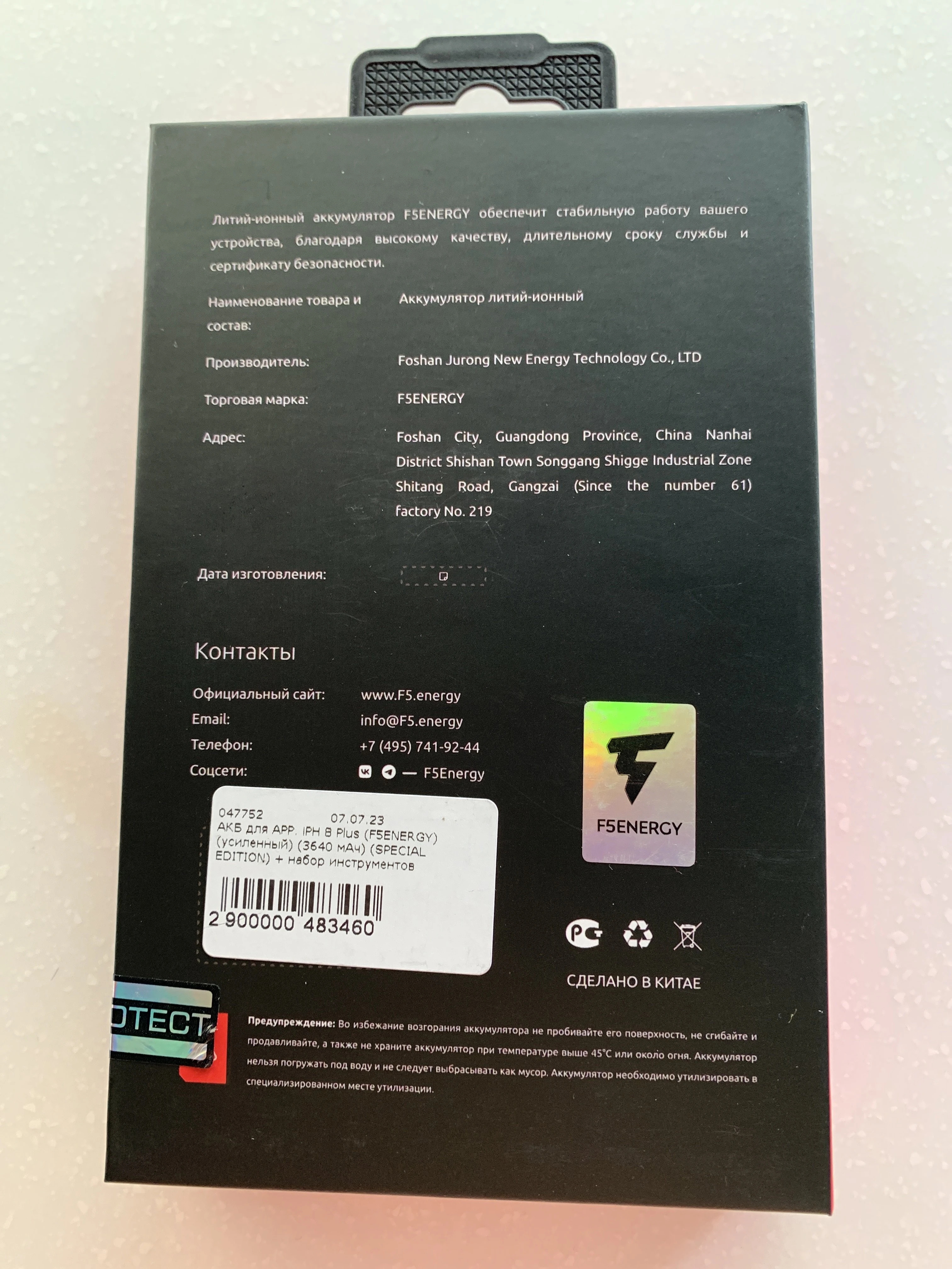 Описание Аккумулятор для Apple iPhone 8 Plus (F5ENERGY) (усиленный) (3640 мАч) (SPECIAL EDITION) + двухсторонний скотч