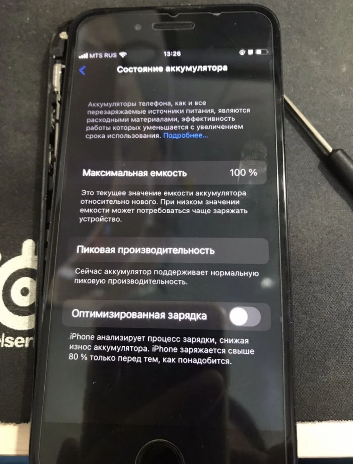 Я был очень удивлен качеством АКБ , совсем не хуже оригинального! Заменил без проблем , перепрошил чип. Емкость показывает 100% Если вы меняете аккумулятор на устройствах iPhone XS или более поздних моделях, то у вас может возникнуть проблема с отображением прочерка на экране. Чтобы избежать этой проблемы, нужно перенести родной контроллер батареи и установить обманку.