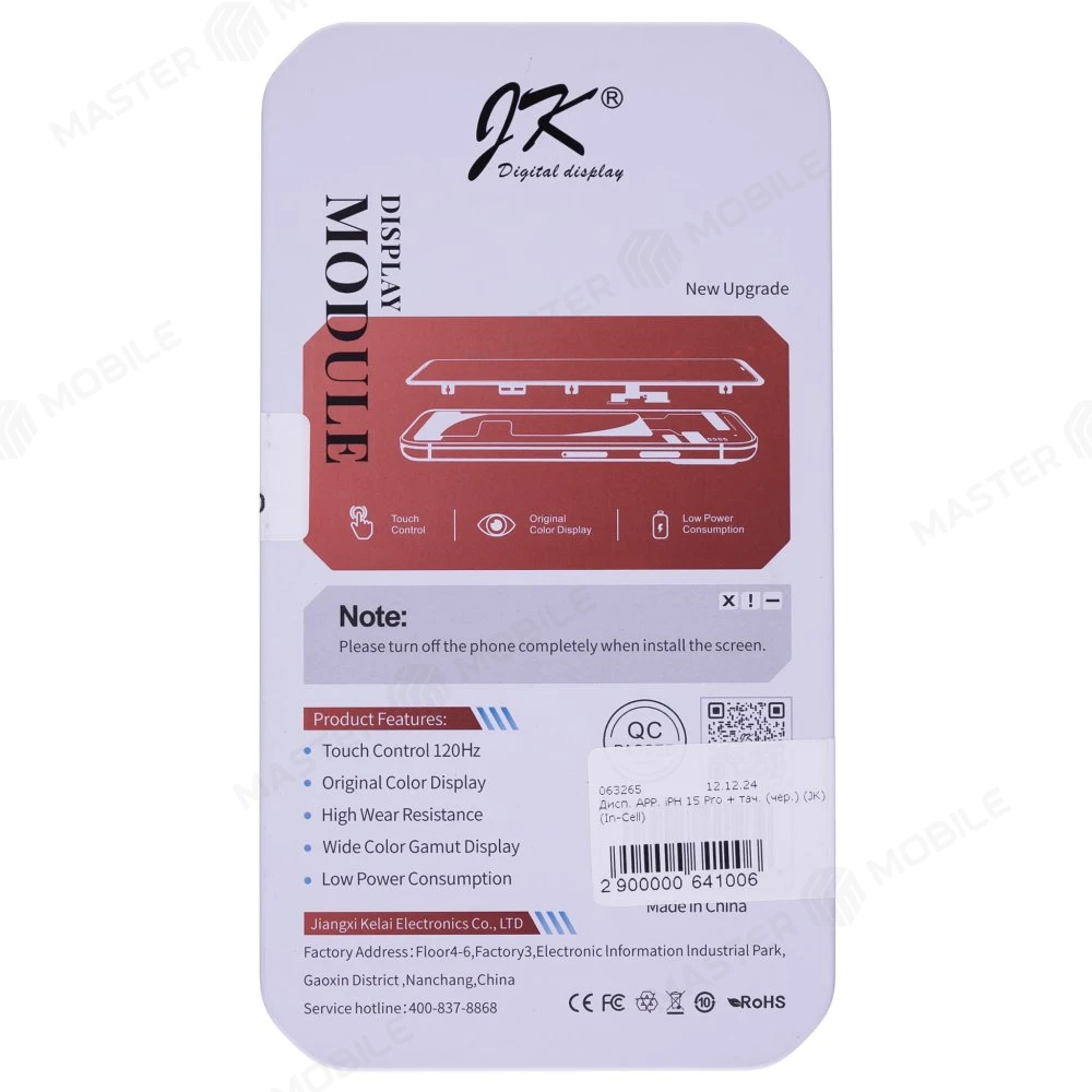 Характеристики Дисплей для Apple iPhone 15 Pro + тачскрин (черный) (JK) (In-Cell) (площадка под IC)