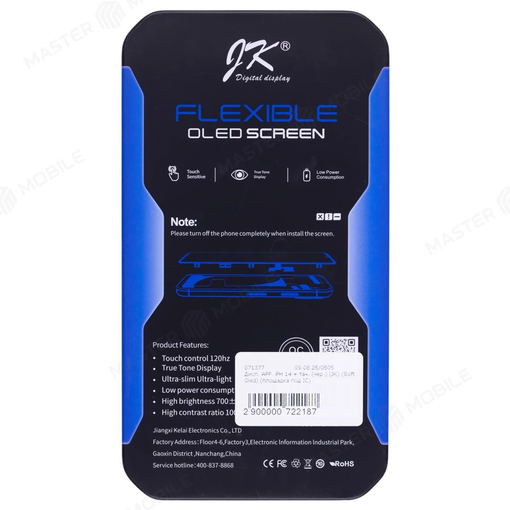 Характеристики Дисплей для Apple iPhone 14 + тачскрин (черный) (JK) (Soft Oled) (площадка под IC)