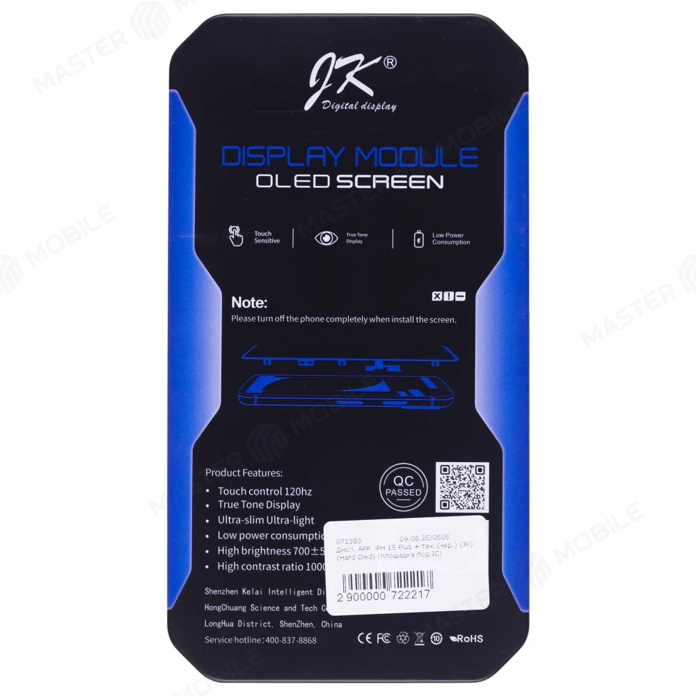 Описание Дисплей для Apple iPhone 15 Plus + тачскрин (черный) (JK) (Hard Oled) (площадка под IC)