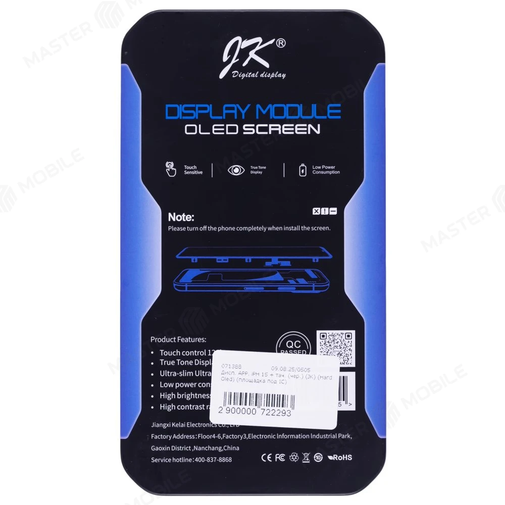 Характеристики Дисплей для Apple iPhone 15 + тачскрин (черный) (JK) (Hard Oled) (площадка под IC)